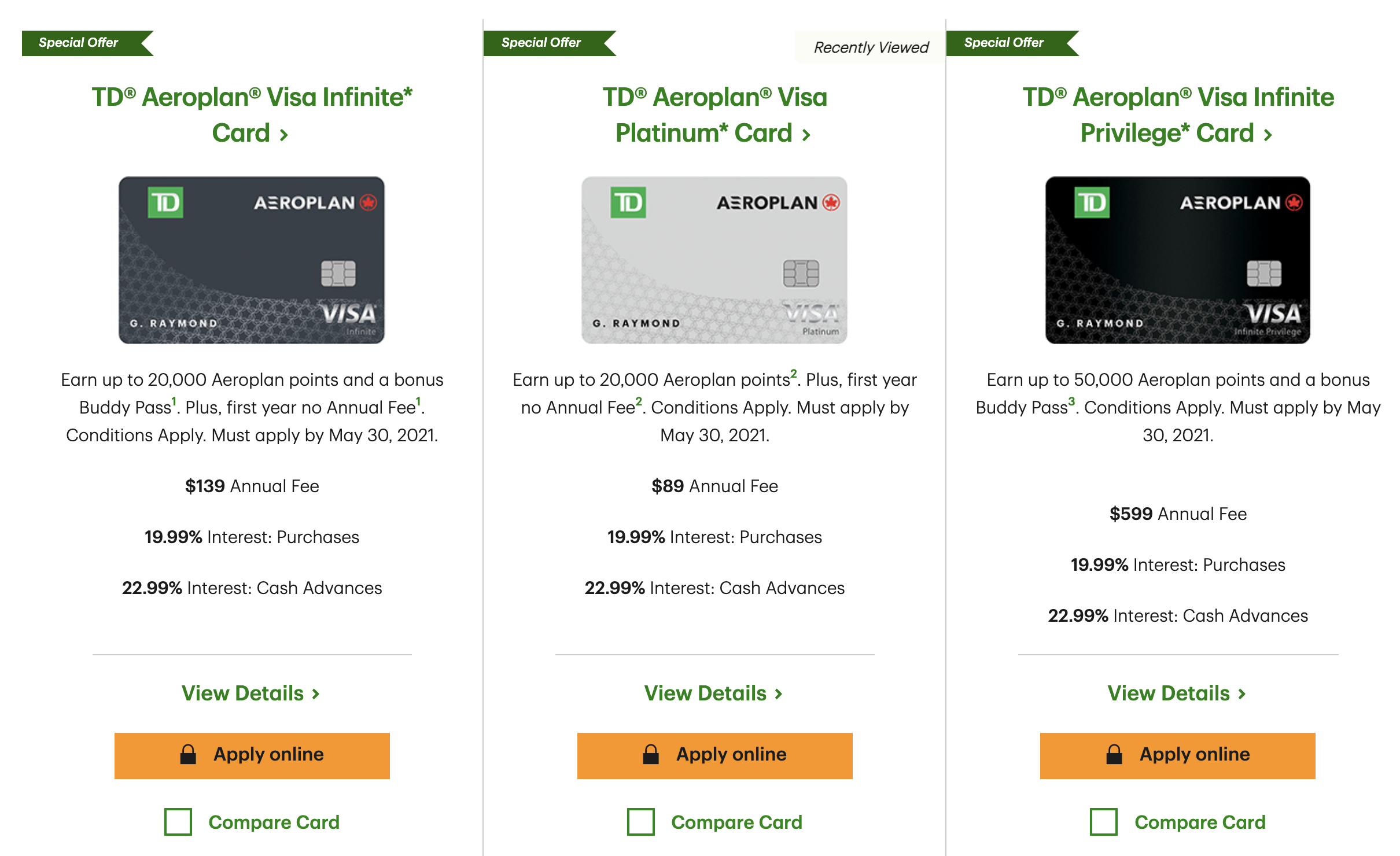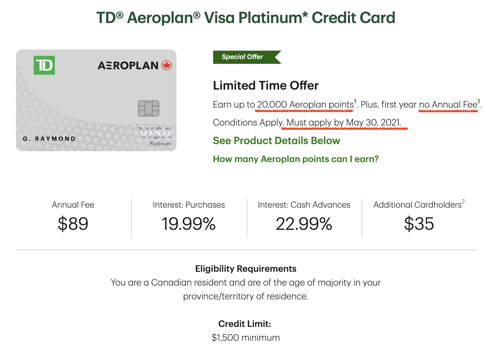 최근 TD 신용카드가 버디패스를 없애고, 에어로플랜 마일리지를 더 주는 프로모션을 실시한다.