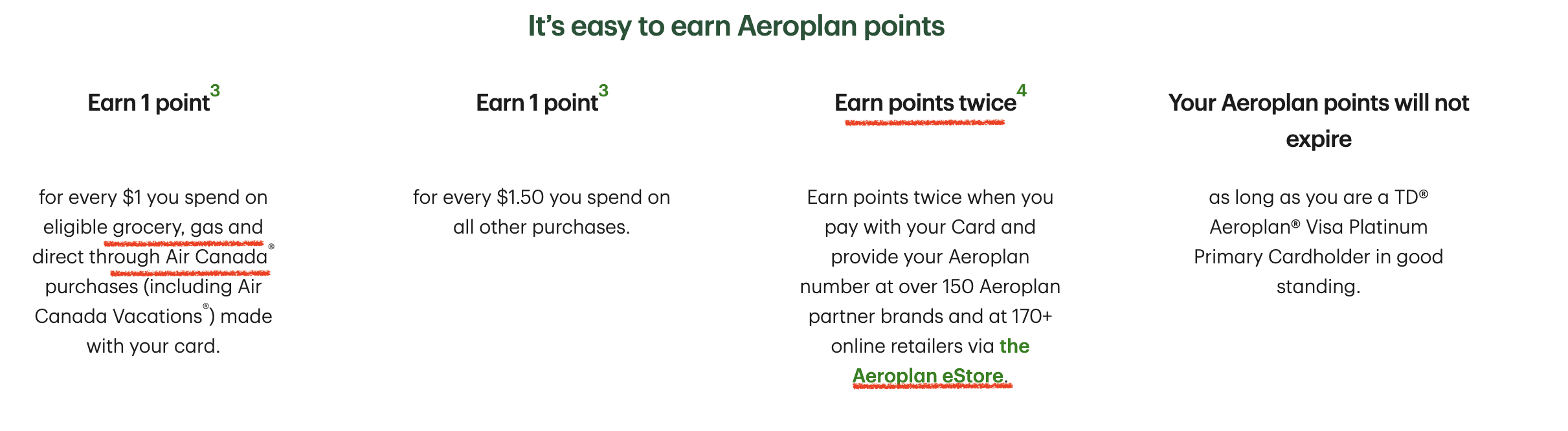 장보기, 주유소에서 기름충전하기, 에어캐나다 혹은 에어캐나다 베케이션에서 해당 카드로 구매하면 에어로플랜 1포인트를 더 준다. 💕